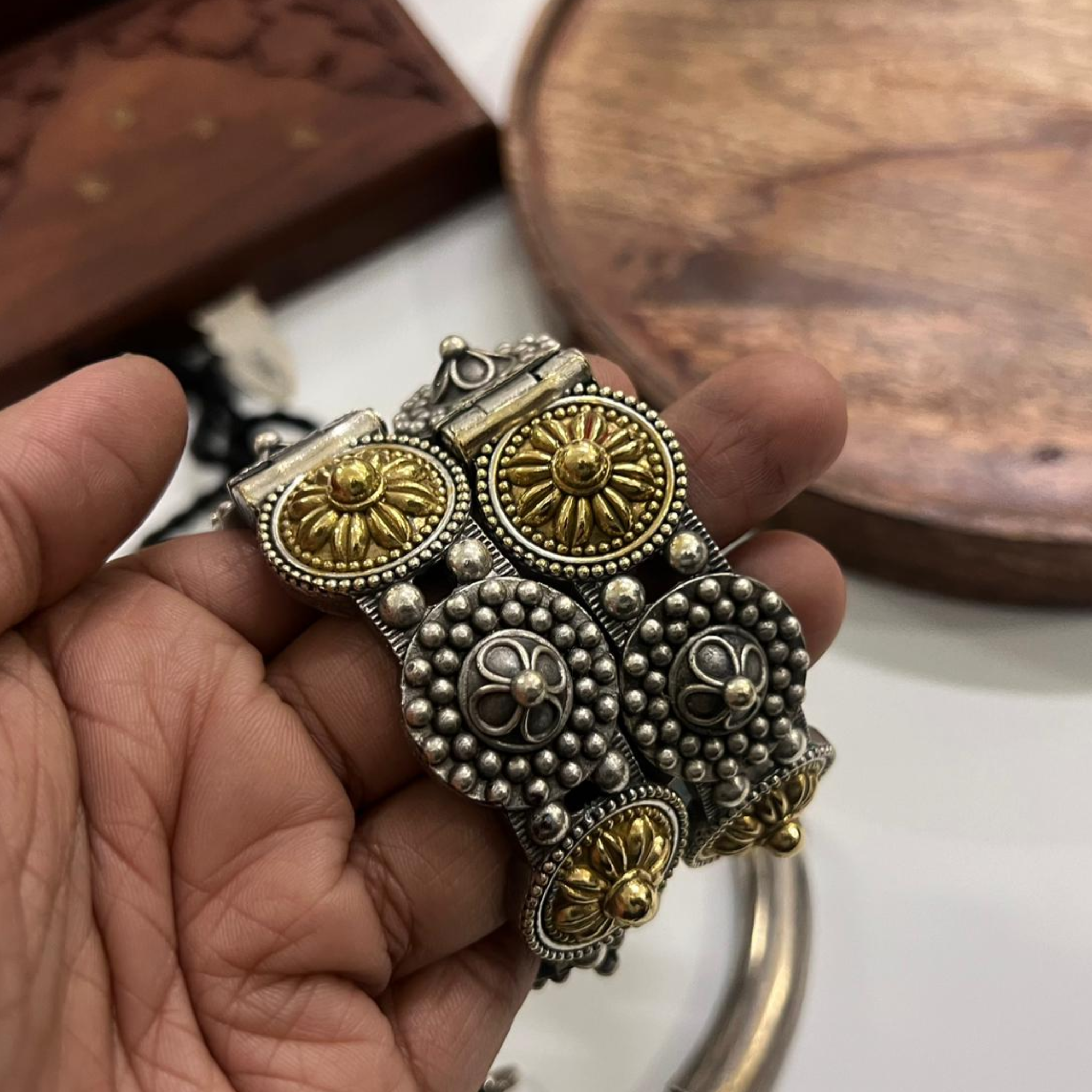 Dual-Tone Designer Finish: Premium oxidised silver paired with subtle gold-tone accents for a luxurious look.